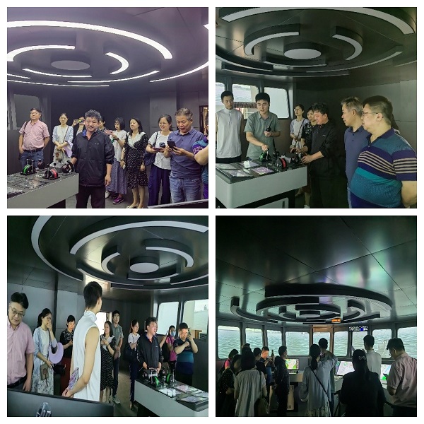 活动第一站,全体成员参观了全任务大型船舶操纵模拟器。全任务大型船舶操纵模拟器是航运学院科研工作的平台之一,已经具备了自主开发新的训练海域、新的船舶模型的能力,承担了许多港口、航道、桥梁等国家重大项目的论证工作,在国内通航安全论证研究领域享有盛誉。