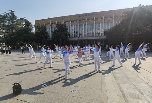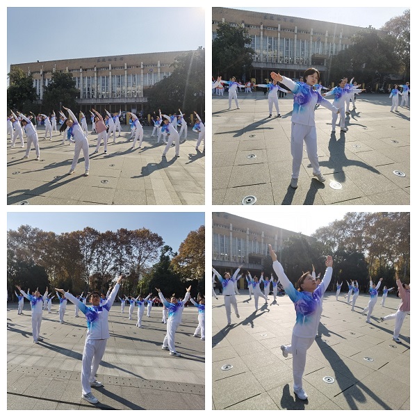 宝剑锋从磨砺出,梅花香自苦寒来。为呈现出一场精彩的比赛、取得良好的成绩,老师们在学院分工会的组织下,以高度的责任感和荣誉感参与到日常训练中,利用周末开展集中训练。在教练的指导下,老师们完成了从零基础入门到精通的蜕变,逐一打磨动作、调整队形;每一位老师都全情投入,相互鼓励加油,彼此纠正对照,最终得以在比赛场上呈现出最佳状态!