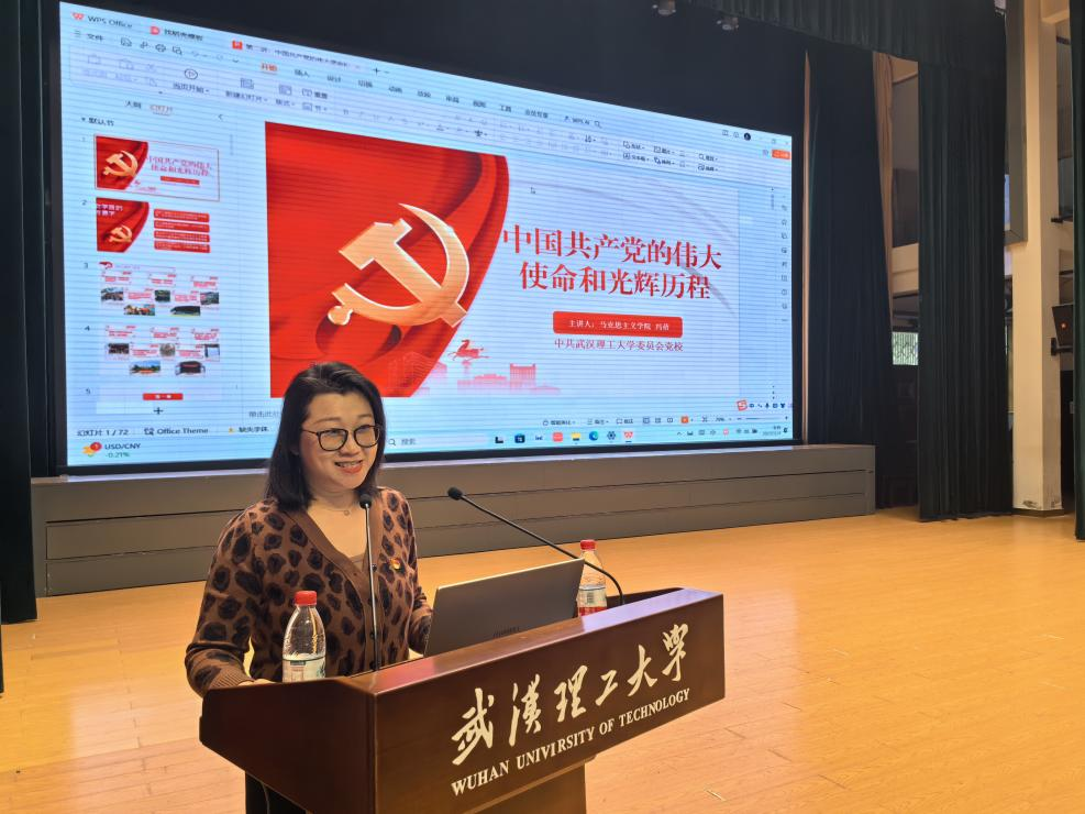 “为有牺牲多壮志,敢教日月换新天”。授课第二讲,冯蓓老师以《中国共产党的伟大使命和光辉历程》为题开展了一堂深刻的专题党课。她带领全体同学回顾并深度解读了中国共产党诞生与发展的艰难探索之路,也重温了不同历史时期中国共产党人矢志不渝地艰苦奋斗和取得的伟大成就。回望中国共产党的成长与辉煌历程,就是无数中国共产党人前仆后继、不畏牺牲、艰苦卓绝的奋斗历程史,就是在苦难中磨砺成长、在探索中铸就辉煌、在失误后拨乱反正、在奋斗后赢得未来的光荣史诗。冯蓓老师鼓励学员把个人的发展与中华民族伟大复兴结合起来,将自己的理想融入中华民族伟大复兴的中国梦中,在党的领导下实现个人的全面发展。