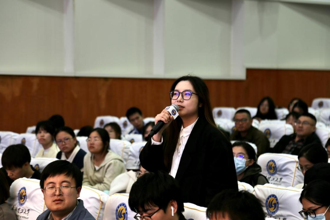 互动交流环节,杨泽伟教授耐心解答了同学们关心的问题,从“泛安全化”到结合实例谈如何有效避免高质量共建“一带一路”中的风险。结合实际需求,他勉励现场同学们要不断提高外语水平,在国家“一带一路”倡议践行中发挥作用、推动建设。