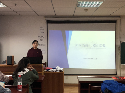 会议伊始,全体参与人员齐唱共青团团歌。紧接着,王静老师介绍了团支书的全称、定义及基本职责。团支书的基本职责主要包括:定期召集团支部委员并召开团支部团员大会、抓好团的思想建设和组织建设、积极配合所在学校院系开展工作、做好“三会两制一课”工作、认真了解团支部团员青年的思想动态、增强集体的意识和荣誉感、积极在团支部发展团员、党员并开展丰富有益的团日活动、抓好团支部和支委会的自身建设、同有关单位和组织保持密切联系、加强对后进团员的教育等。