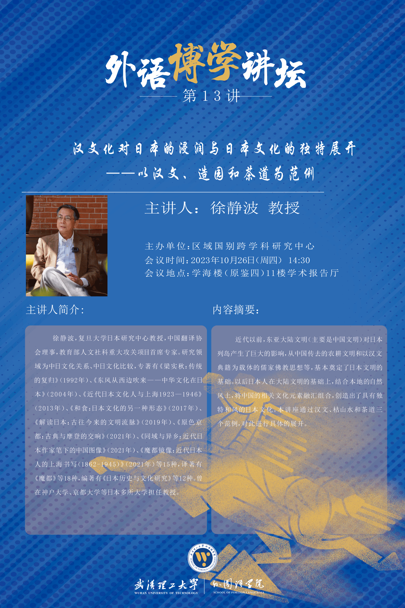 【博学讲坛】汉文化对日本的浸润与日本文化的独特展开——以汉文、造园和茶道为范例