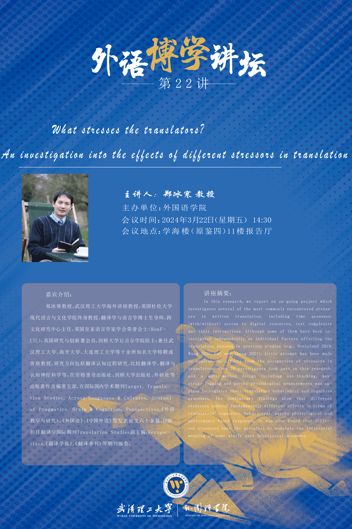 【博学讲坛】What stresses the translators? An investigation into the effects of different stressors in translation